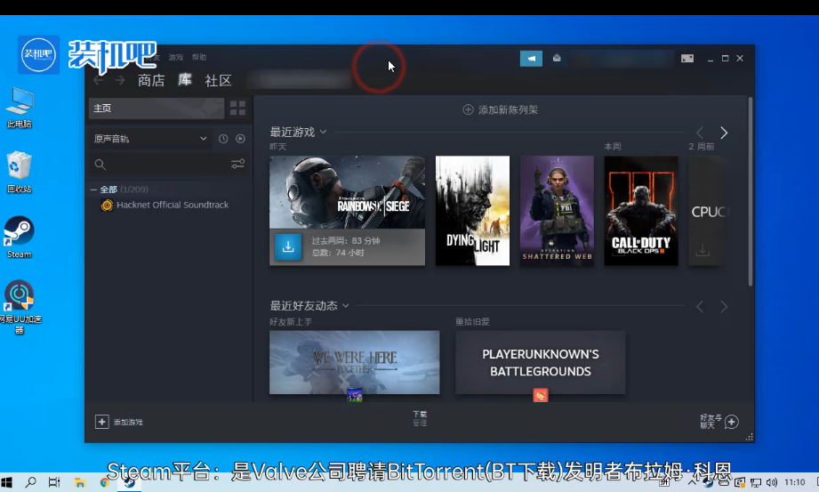 1、steam是Valve公司聘请BitTorrent(BT下载)发明者布拉姆科恩开发的一款游戏平台。