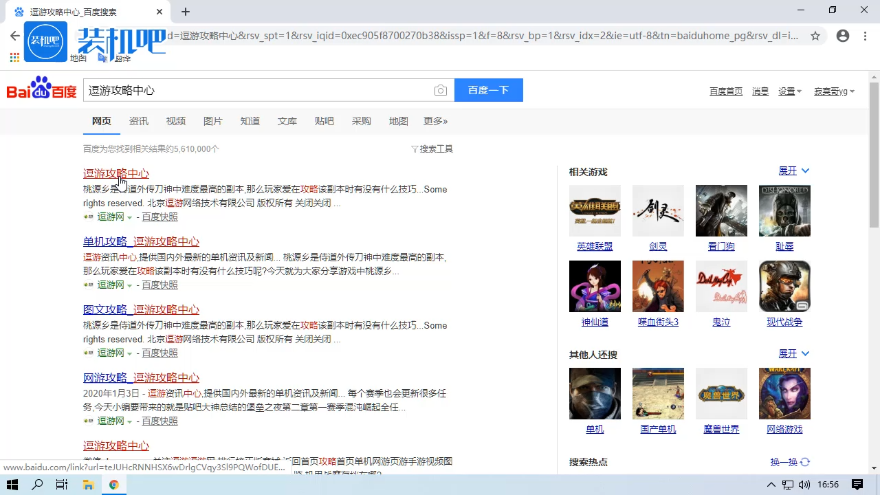 1、百度搜索“逗游攻略中心”,点击第一个搜索结果。