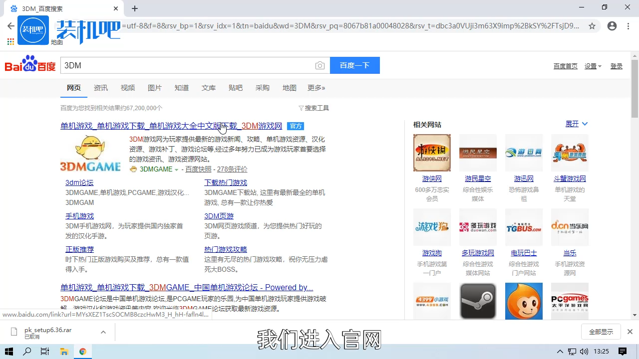 1、打开百度,搜索“3DM”,进入3DM官网。