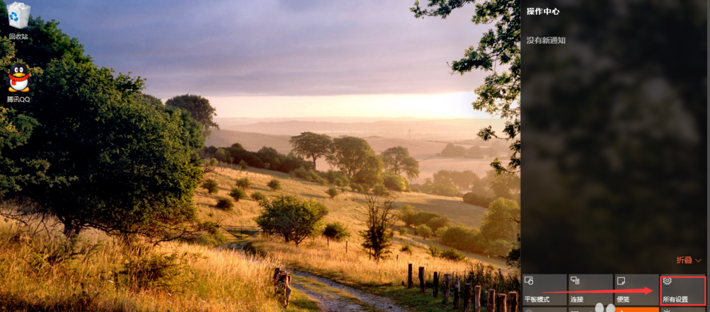 1.进入win10系统,点击界面右下角的“通知”按钮,选择设置打开。