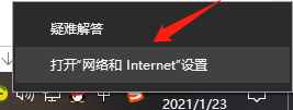1、进入win10系统的桌面,右击桌面右下角的网络图标,在弹出的小窗口中选择打开网络和internnet设置选项;