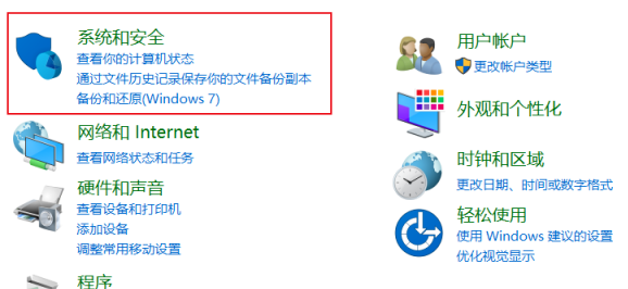1、打开电脑的控制面板界面,点击“系统和安全”。