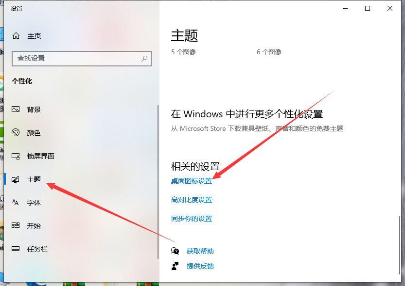 2、在个性化设置中点击主题,然后再点击右边的桌面图标设置。