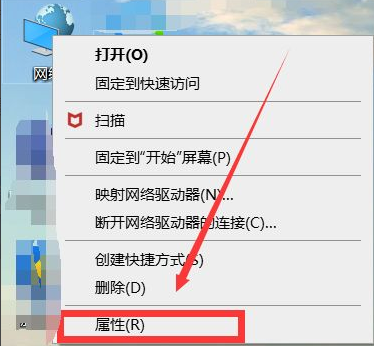 1、我们先打开电脑,在电脑桌面上找到网络图标,鼠标右键点击“网络”图标,点击“属性”选项进入页面。