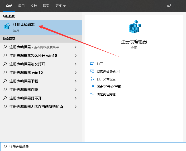 1、“win+q”打开搜索框,然后输入注册表编辑器。