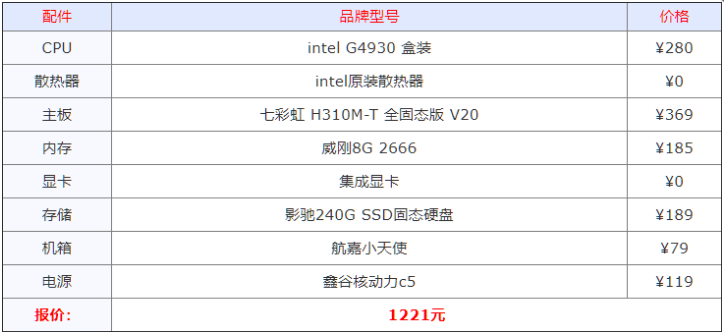 这是一款最入门的配置,可以用来普通办公,上网、看视频。双核的G4930处理器用来满足这些需求完全OK,低功耗,低噪音,搭配上固态硬盘,整机操作体验还是很流畅的。