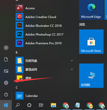 1、首先我们点击开始菜单图标,然后点击设置图标进入设置界面。