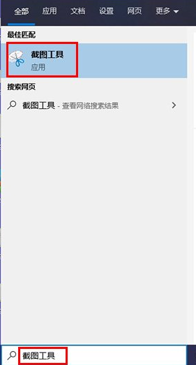 1.在win10开始菜单旁边的搜索“截图工具”,点击最佳匹配项的“截图工具”。