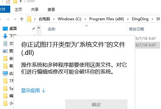 1、首先我们打开一个程序的安装目录,可以看到一些dll的一些文件,双击就会出现这个页面,如果电脑中没有安装对应软件的话就无法打开它。