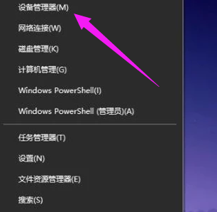 1.第一步先要回到电脑桌面当中,在用鼠标右键单击左侧的开始菜单图标。再出现的选项菜单栏中找到其中一个设备管理器的功能。