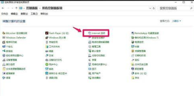 1.进入到控制面板当中,我们鼠标右键选择【internet选项】。