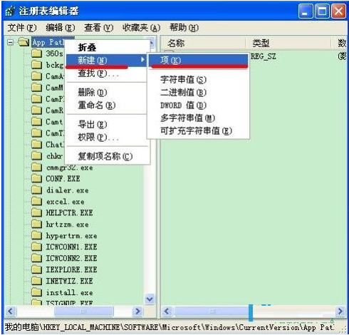 Paths,并且需要在左边窗口里面,鼠标右击AppPath,接着选择【新建】→【项】。