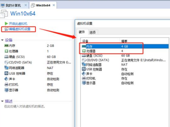 8、默认内存是2GB,处理器是1个,如果第7步没有更改,可以点击【编辑虚拟机设置】,再次更改这些属性。