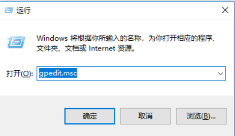 2、输入命令:gpedit.msc,打开配置组策略。