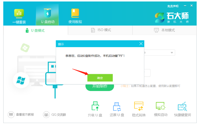 4、制作成功后,还需要点击软件右下角的模拟启动,用以测试U盘启动盘是否制作成功。