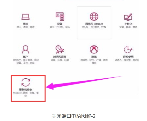点击“更新和安全”