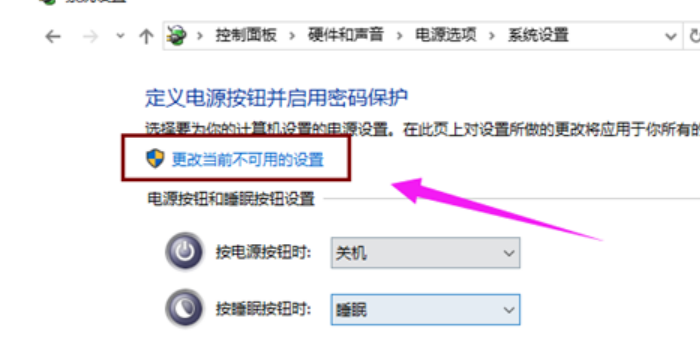 3、在“电源选项”下,点击“更改电源按钮的功能”;