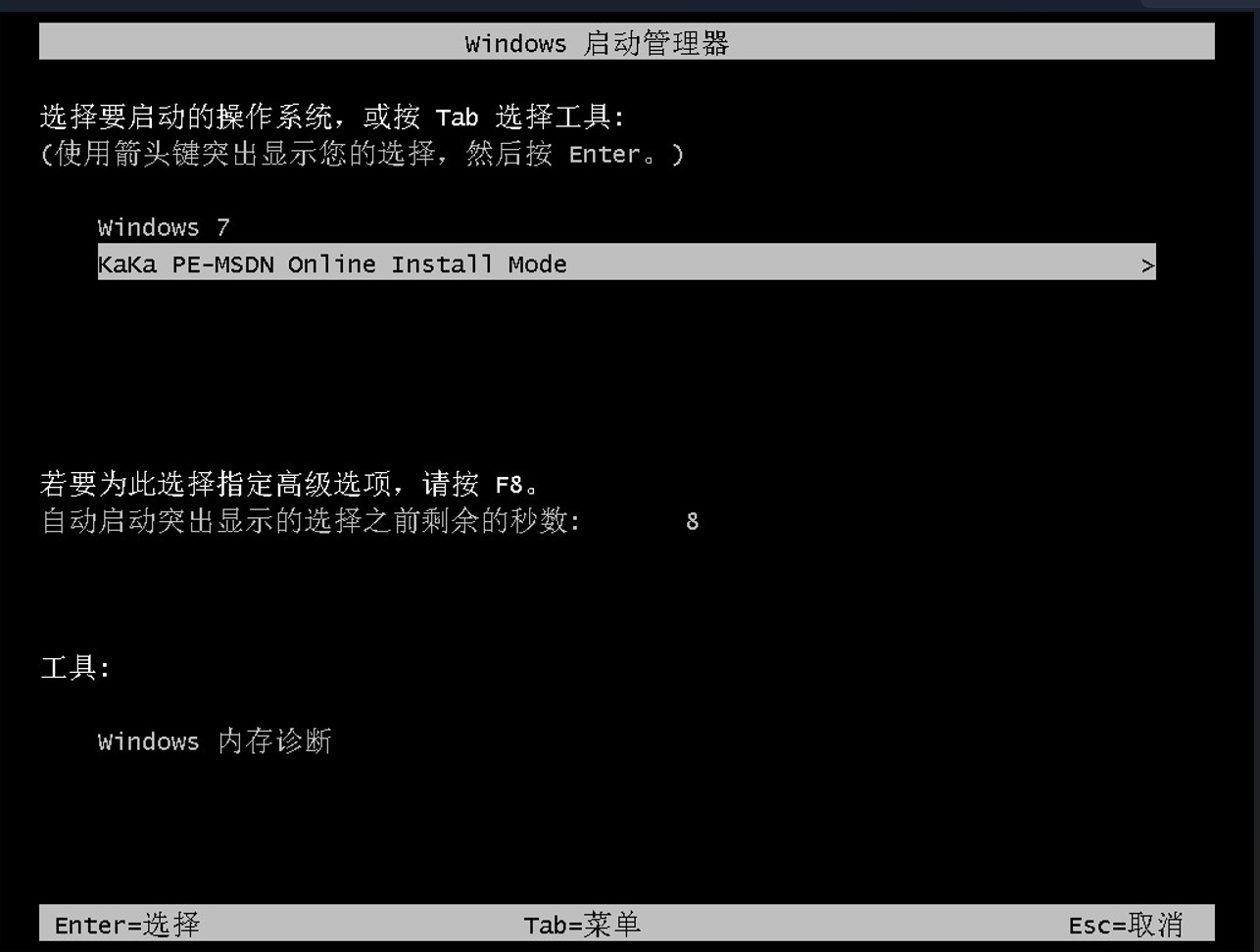 4、进入启动管理器页面,选择第二项回车,等待系统自动安装。
