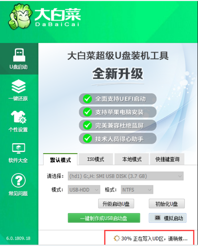 软件版本:大白菜超级U盘装机工具 v6.0.1905.1
