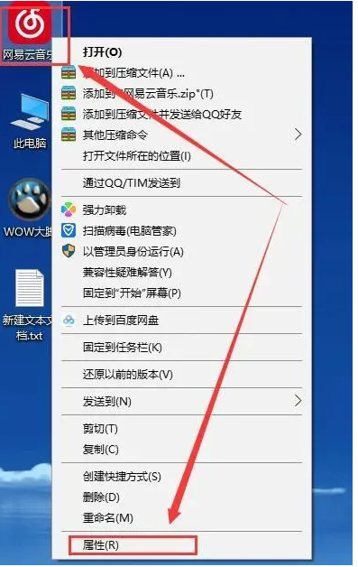 1、这个方法是针对单独应用字体不清晰的,这里以网易云音乐为例,鼠标右键该软件,选择“属性”。