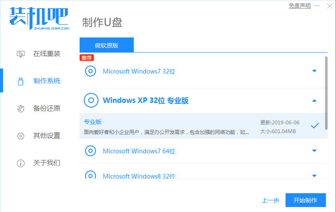 2、选择需要安装的系统,点击开始制作。