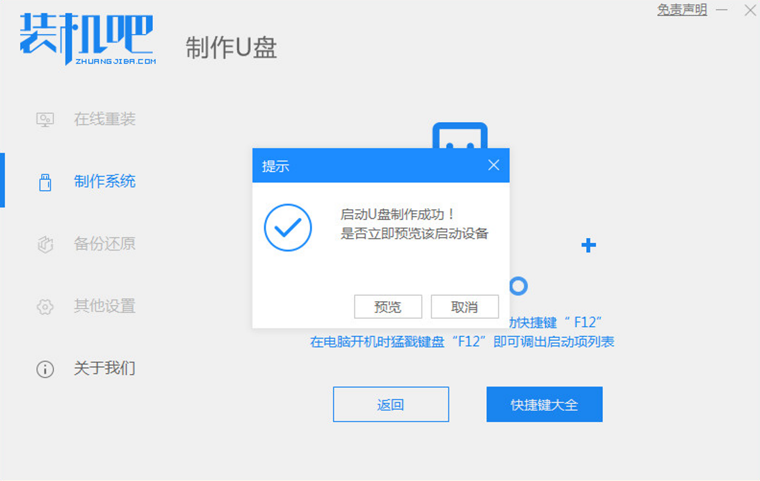 4、制作完成后,浏览需要安装的电脑主板的启动快捷键是什么,然后返回退出u盘。