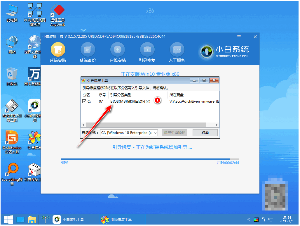 7、弹出引导修复工具页面,在分区C盘前打勾,等待系统自动安装。