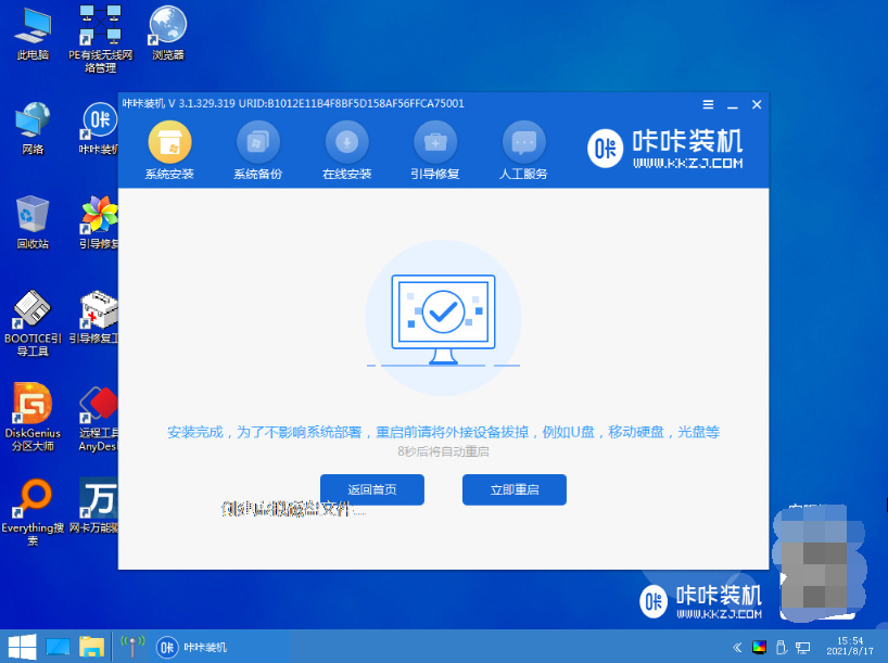 5、然后咔咔装机工具会自动打开安装win10系统。