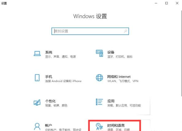1、点击桌面左下角的开始菜单,点击“设置”图标,然后点击进入时间和语言。