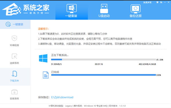 5、下载完成之后,等待环境部署完毕之后,点击立即重启。
