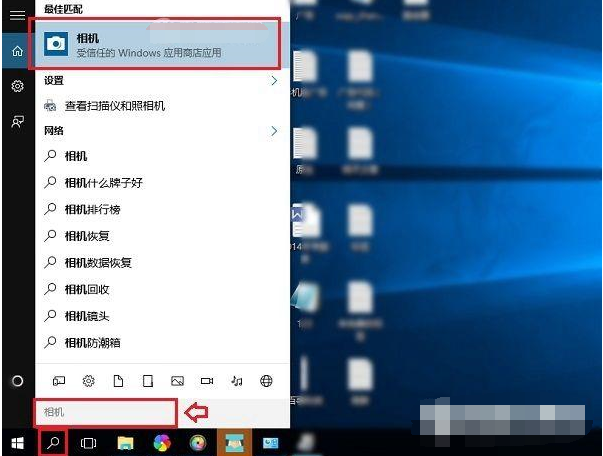 1、第一步检查驱动那些没问题之后,打开Win10系统桌面底部状态栏的搜索框,输入“相机”后,点击显示结果的“相机”程序进入。
