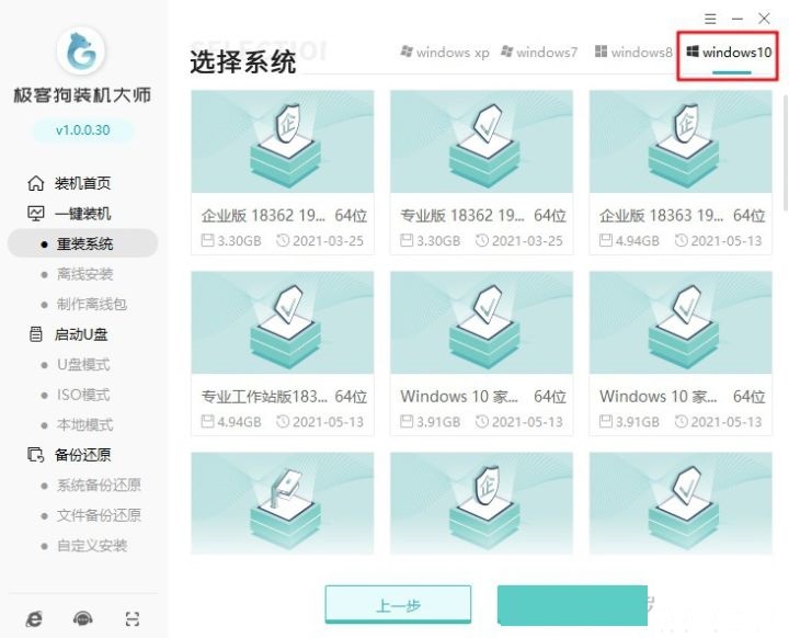 2、接着进入选择系统的界面,选择我们需要安装的win10系统版本,点击“下一步”。