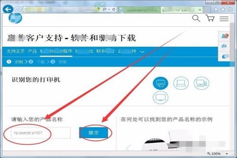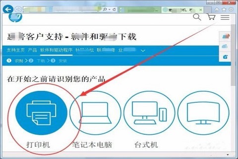 4.惠普软件和驱动下载官网中,首先要识别自己的产品,选择打印机;