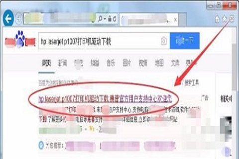 2.然后,打开百度,在地址搜索栏里输入打印机型号打印机驱动下载,根据自己的打印机型号进行搜索下载;