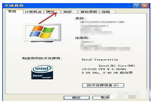 2.然后,在弹出的“系统属性”对话框中点击“硬件”并打开;