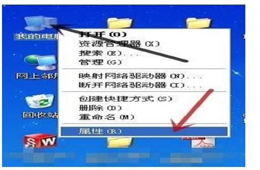 1.首先,对着桌面上的“我的电脑”单击鼠标右键打开,在弹出的菜单中点击打开“属性”;