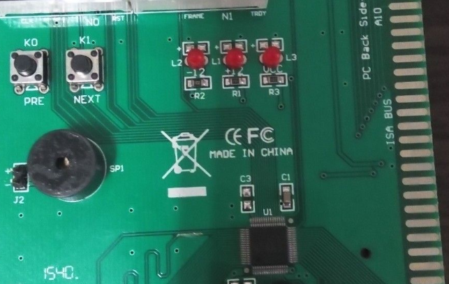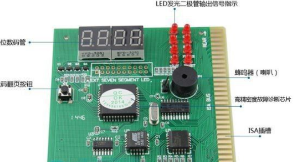 4、如果没发现异常,再利用硬件最小系统法,将主板诊断卡插在ISA或PCI槽上(如主板带ISA槽,建议先选择ISA槽;如没有ISA槽,再选择PCI槽。选择PCI槽时最好是靠近中间的槽,因为该卡与少量主板有兼容性问题,使用第一个或最后一个PCI槽时可能引起“00”无显),连接好喇叭与主板SPEAKER插座的连线;