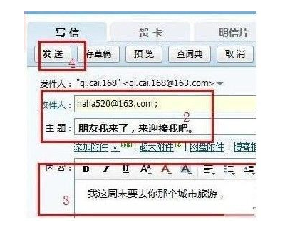 第三步:写发信内容,就和写书信一样,把要说的事情写在内容上面。