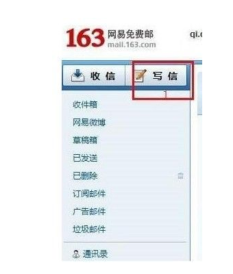 第一步:进入邮箱后,点击在左上角的写信。