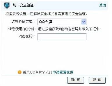 5.选择解除方式:点击QQ令牌,弹出QQ令牌验证框。