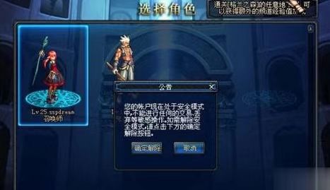 1.进入游戏界面后,如果看见提示则表示账号进入了安全模式,需要您验证密保进行解除。