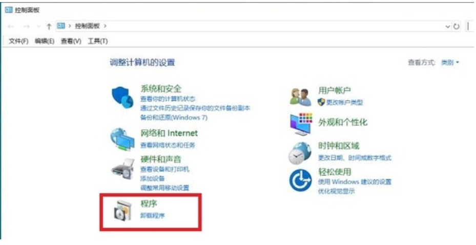 2、选择【程序】。