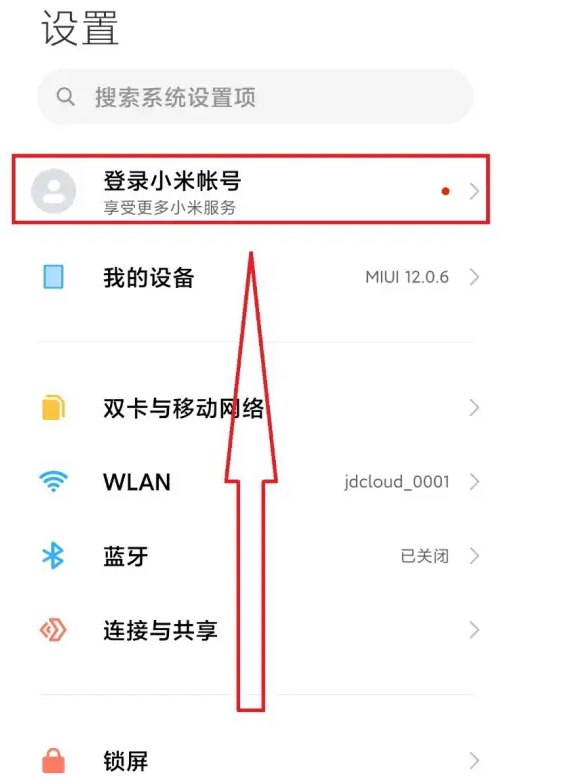 2.在设置中点击“登录小米账号”。