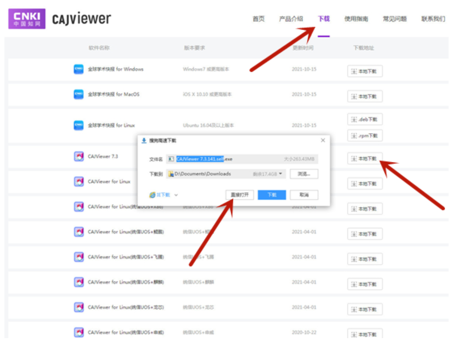 第二步:在下载里找到CAJViewer,点击立即下载后,点击直接打开。
