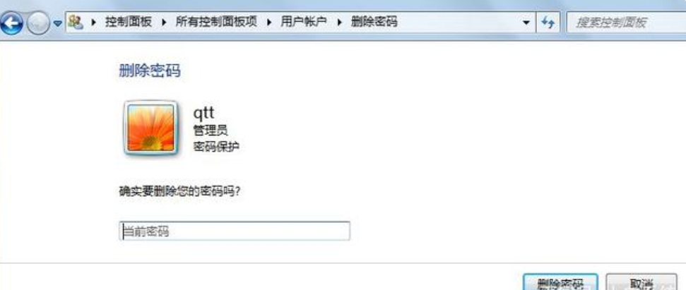 7.点击删除密码,切换窗口到删除密码页面如图。