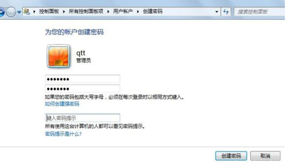 4.点击账户创建密码,切换窗口到创建密码页面,如图。