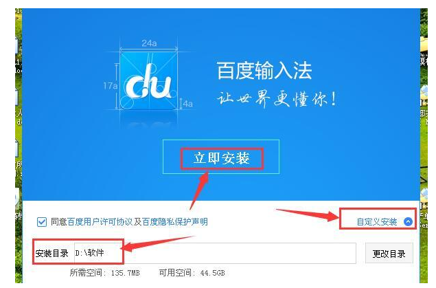 5、在安装界面选择好自定义安装的位置,然后点击“立即安装”;
