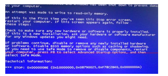 5.蓝屏代码:0×000000BE