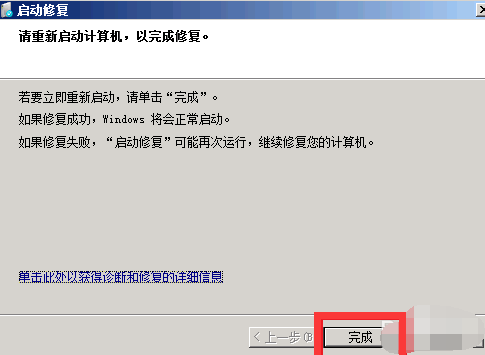 4、点击完成,系统修复完成重启正常。