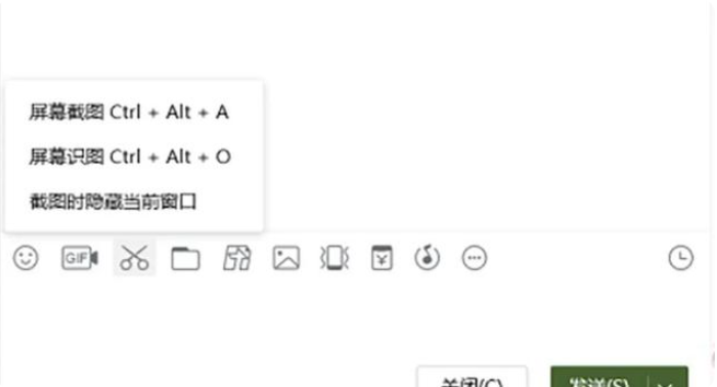 打开运行微信聊天对话框,点击剪刀工具,截图快捷键按住alt+a键或shift+alt+a键。